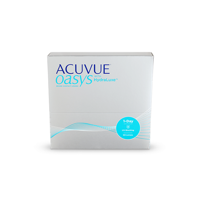 Experience all-day performance and excellent comfort and vision with ACUVUE OASYS® (90 pack) Contact Lenses 1-Day with HydraLuxe™ Technology. These contacts are made for demanding days that can leave your eyes feeling tired, heavy and dry. ACUVUE OASYS® (90 pack) contacts work with your eyes, lifestyle and vision-correction needs. Plus they offer the highest level of UV blocking available in a daily disposable.