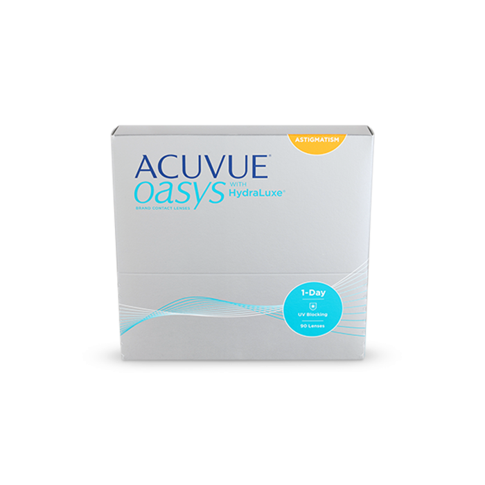 Choose ACUVUE OASYS® 1-DAY for ASTIGMATISM Contact Lenses for all-day clear and stable vision. No matter the activity, these daily disposable contact lenses for astigmatism are designed to provide a high-performing and comfortable wear. Featuring Hydraluxe™ Technology, these lenses allow you to say goodbye to tired eyes. Choose ACUVUE OASYS® 1-DAY for ASTIGMATISM 90-Pack for all-day stability and focus.