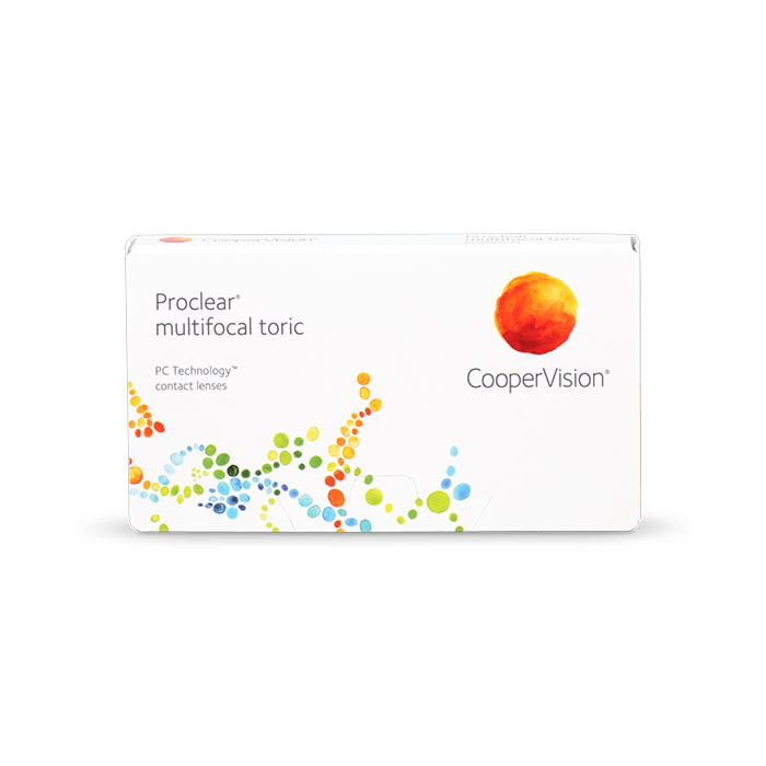 • CooperVision® Proclear® multifocal toric contact lenses are made with PC Technology™ which was specially created for contact lens wearers like you; it binds water to your lenses, helping them remain fresh and comfortable all day long.